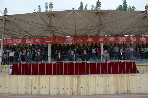 4月23日至24日,我校2016年春季运动会在学校运动场隆重举行。8000余名在校生及部分教职工参加开幕式,党委书记付章丽、校长于洲声等全体学校领导在主席台就坐,开幕式由党委副书记孔晓霞同志主持。