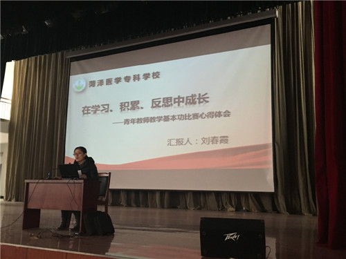1月22日上午,我校在学术报厅举行教学经验交流会。交流会由教务处处长蒋继国主持,由我校生理教研室主任陈宝琅教授、临床护理教研室刘春霞老师、组胚教研室牟英君老师、外语教研室孙蕊老师主讲,全校专兼职教师参加。