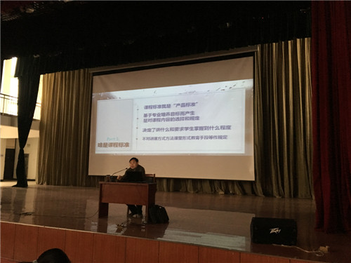 首先,陈宝琅教授从什么是课程标准、制定课程标准的指导思想、时间进度、课程标准的主要内容、课程标准制定体例、反馈与提升等六个方面为大家阐述了如何规范制定课程标准及在制定课程标准中应注意的内容,陈教授的讲解条理清晰,风趣幽默,对与会老师具有很强的现实指导意义。