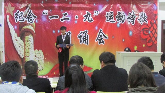 12月9日,我校药学系课外在2号实验楼101教室举行纪念“一二•九”诗歌朗诵比赛。学生工作处处长皮全民、校团委书记郭树榜、药学系主任刘观昌、药学系党总支书记黄成效、药学系专职辅导员刘宁老师以及学生会代表担任本次比赛评委