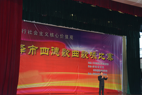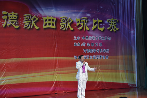 9月9日,由菏泽市委宣传部主办、菏泽市文联和我校承办、菏泽音乐家协会协办的菏泽市四德歌歌咏比赛在我校举行。比赛分为初赛和决赛两个部分,共有31名选手参加了初赛,在进入决赛的15名选手中,来自菏泽学院的刘媛媛和巨野选区的王厚德获得了一等奖,其他选手分获二、三等奖。