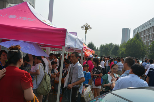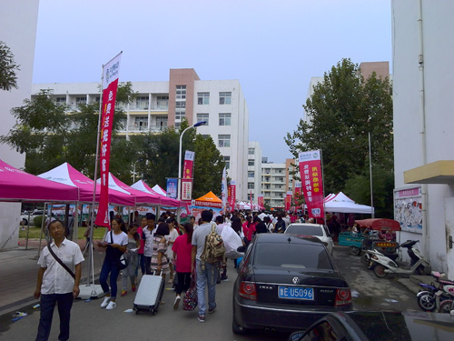 新生报到现场极为火爆,迎新人员熟练地为新生办理着入校手续,缴费、登记、入班、物品发放等环节进行得有条不紊。为保证家庭困难学生顺利入学,学校开辟了绿色通道,提供贷款和缓交、免交学费等服务。200余名志愿者及时、细致地为新生及家长解疑答惑,指引道路,搬运行李,办理入学登记,热情周到地提供服务,校园中洋溢着亲切、热烈的气氛。为方便新生报到,学校在汽车站、火车站还专门设立了新生接待站,专车接送新生及家长。