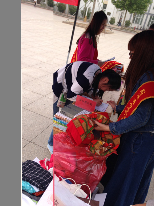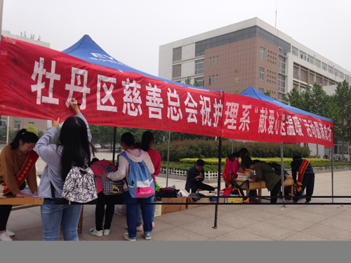 5月8日、10日,我校护理系学生会在泉石广场举办“献爱心,送温暖”慈善募捐活动。本次活动以捐衣物、捐文具、捐书的形式为主,两天共收到爱心捐赠1060件衣服,152双鞋子,56本书,22个背包,4件玩具。募捐所得物品均捐赠给牡丹区慈善总会。