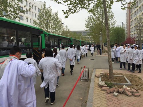 学校领导高度重视本次临床见习,此前,党委委员、副校长李琳召集校企合作处、学生工作处、教务处、安保处、教学系部相关人员召开了协调会,就见习目的、内容、注意事项、安全等事项进行了安排部署。校企合作处与相关医院进行了沟通、协调,并对见习轮转科室进行了周密安排。在4月13日下午举行的启动仪式上,各教学系部主任、总支书记和班级辅导员到达出发现场,对见习学生强调注意事项,希望本次见习取得良好成绩。其后,参加本周见习的学生分乘10辆车奔赴附属菏泽市立医院。(校企合作处)