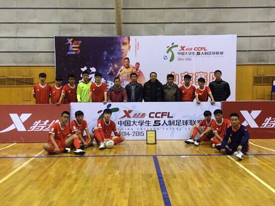 12月26日至31日,我校足球队参加了在山东大学举行的2014—2015中国大学生五人制足球联赛山东省预选赛暨山东省大学生五人制足球锦标赛,并获得“体育道德风尚奖”,杜洋、徐岩2名同学被评为优秀运动员。