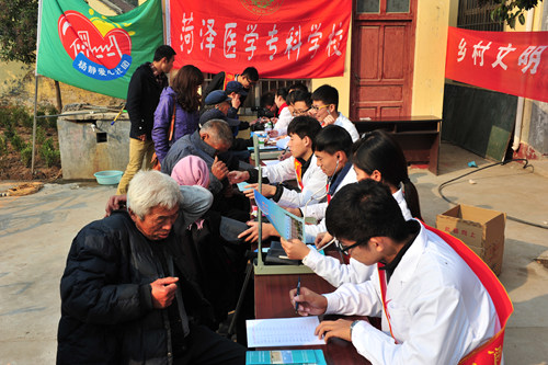 11月9日,菏泽医专组织15名大学生志愿者到牡丹区吕陵镇贾坊社区开展“乡村文明—志愿者在行动”免费健康查体活动,为贾坊社区的老百姓进行免费健康体检和科普知识宣讲,并为群众建立健康档案,充分展现了“奉献、友爱、互助、进步”的志愿服务精神,受到了广大群众的一致好评。