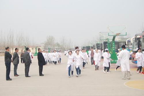 学校领导高度重视本次临床见习,此前,党委委员、副校长袁志勇召集校企合作处、学生工作处、教务处、安保处、教学系部相关人员召开了协调会,就见习目的、内容、注意事项、安全等事项进行了安排部署。校企合作处与相关医院进行了沟通、协调,并对见习轮转科室进行了周密安排。在3月24日下午举行的启动仪式上,各教学系部主任、总支书记和班级辅导员到达出发现场,对见习学生强调注意事项,希望本次见习取得良好成绩。其后,参加本周见习的学生分乘18辆车奔赴各见习医院。(校企合作处)