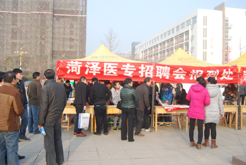3月10日,由菏泽市人力资源和社会保障局主办、我校承办的山东省鲁西南地区2014年医药卫生类大中专毕业生招聘会在我校石泉广场隆重举行,来自北京、上海、天津和山东省内的医疗机构、医药企业200多家招聘单位以及我校和其他学校的毕业生4500余人参加了此次招聘会。菏泽电视台、齐鲁晚报、菏泽日报社、牡丹晚报、菏泽人才网、菏泽招聘网等多家新闻媒体前来报道本次招聘会。