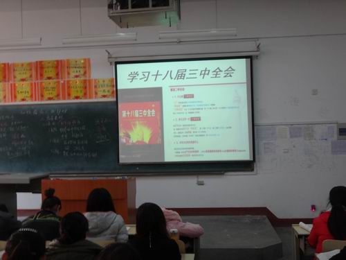 另外,护理系39个班通过举办主题班会,组织学生认真学习三中全会精神。同学们纷纷表示要以高度的政治责任感和历史使命感,认真学习好、领会好、贯彻好十八届三中全会精神,自觉把思想和行动统一到十八大精神上来,认真学习,扎实工作,为实现中华民族伟大复兴的中国梦做出自己的贡献。(护理系)