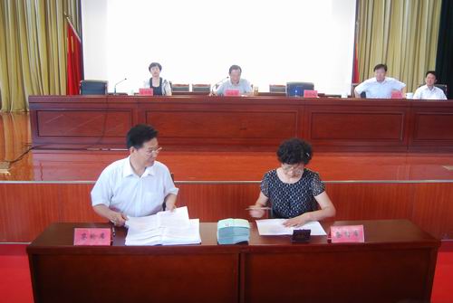7月13日上午,我校首次全员聘用合同签订仪式在新校区大礼堂隆重举行,全校300多名教职工参加了签订仪式。学校党委班子成员在主席台就坐,党委书记付章丽主持仪式并做了重要讲话,校长于信民宣读聘任文件并与每位受聘人员签订聘用合同并颁发聘书。