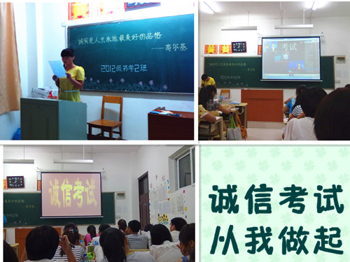 各班会在辅导员主持下,同学们积极发言,纷纷表达了自己对诚信考试的看法。有的班级通过观看关于考试作弊的视频资料,让学生感受的诚信考试、拒绝作弊的重要性;有的班级辅导员向同学们讲述不诚信考试对以后就业和人生所产生的严重影响;有的班级在班干部的带动下集体宣誓诚信考试、杜绝作弊;有的班级组织了诚信考试集体签名活动……,班会形式各异,效果良好。
