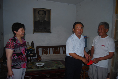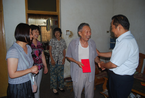 为庆祝建党九十二周年,扎实做好即将开展的党的群众路线教育实践活动准备工作,7月2日上午,学校党委书记付章丽、副校长孔晓霞、袁志勇、刘心臣等在家的领导班子成员,在组织部部长吴晓露、离退休总支书记边廷俊陪同下走访慰问了离退休老党员,并向他们致以节日的祝贺。