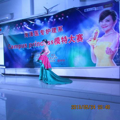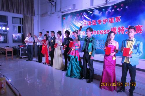 为丰富校园文化生活,展现大学生的靓丽风采,5月24日晚,伴随着绚丽的灯光、动听的音乐,由菏泽医专护理系主办的首届“campus princess”模特大赛在药学系礼堂如期举行。校党委委员、工会主席刘心臣及学工部、组织部、宣传部、基础部、药学系、护理系党政负责人出席大赛并担任评委。活动还邀请到东方模特学校施女士任特邀嘉宾。护理系全体辅导员及护理系全体学生观看大赛,并由40位学生组成了大众评审团。菏泽电视台为比赛进行了实况录播。