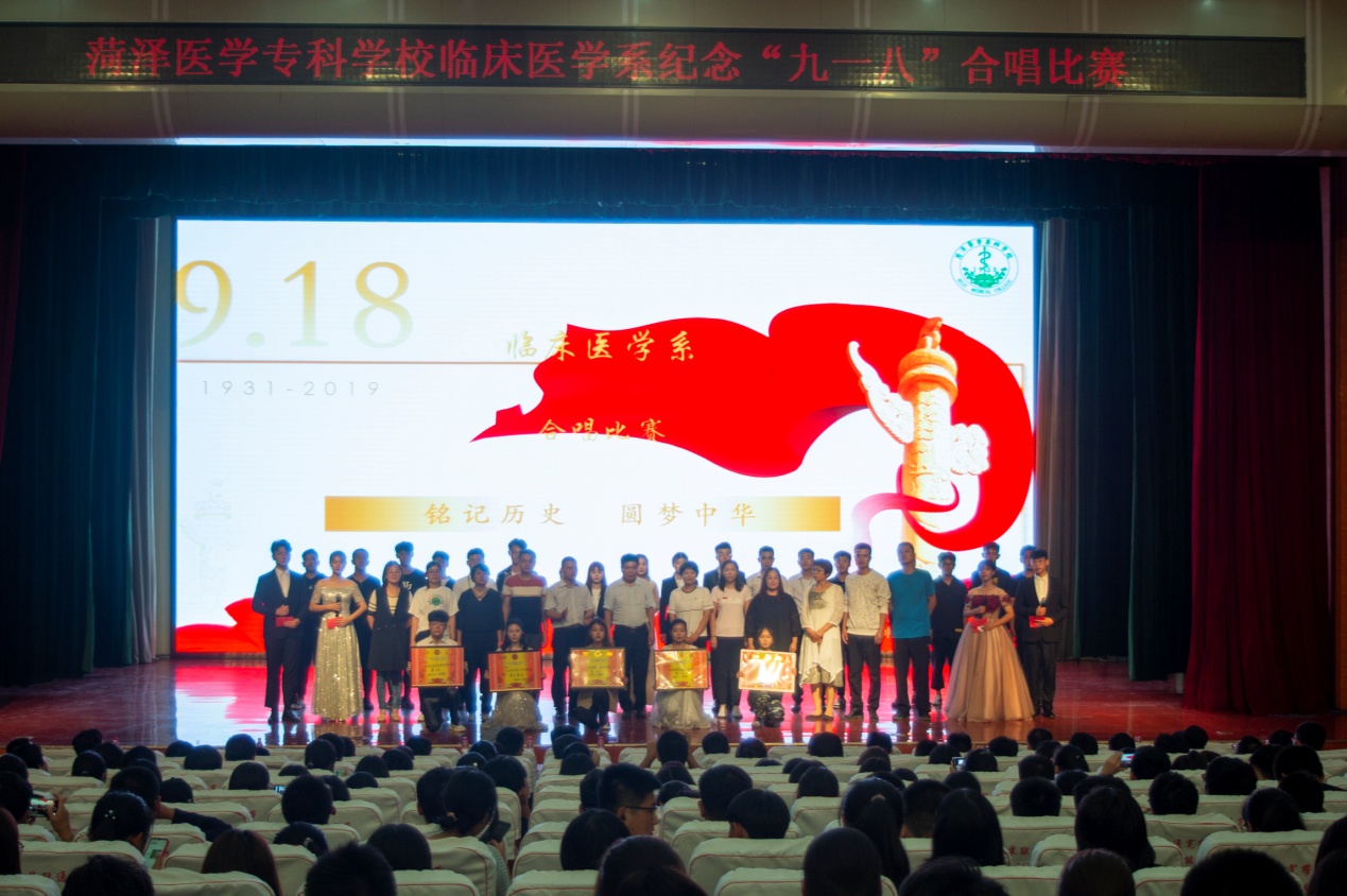 为纪念“9•18”事变八十八周年,弘扬爱国主义精神,9月18日下午,由我校临床医学系举办的“铭记历史.圆梦中华”纪念“九一八”合唱比赛在学术报告厅举行,临床医学系2019级8个合堂班参加了本次比赛。临床医学系党总支书记及辅导员参加本次活动并担任评委。