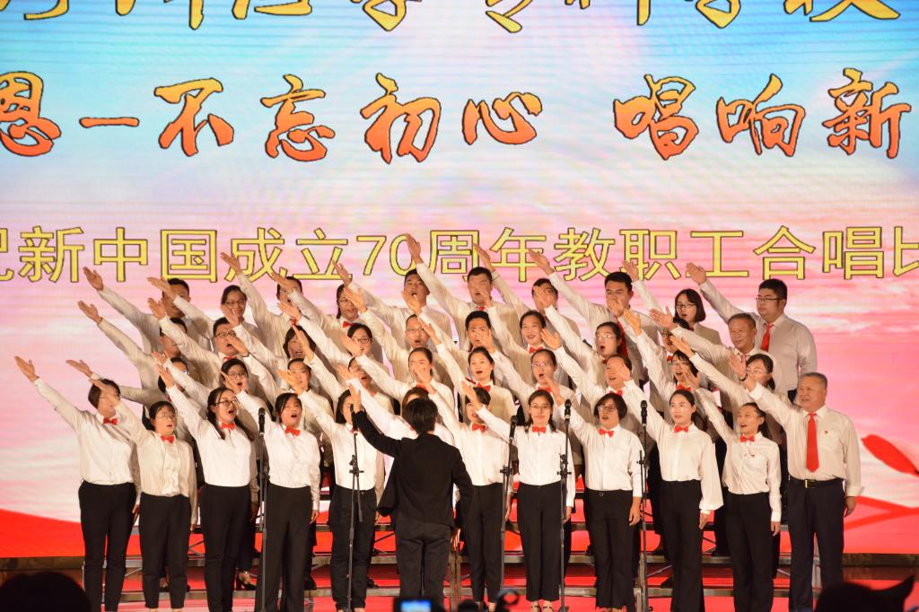 为祖国歌唱,讴歌七十年波澜壮阔、沧桑巨变的伟大征程;为祖国歌唱,礼赞七十载春华秋实、繁荣昌盛的宏伟画卷。我校举办此次合唱比赛,旨在引导广大教职工更加紧密地团结在以习近平同志为核心的党中央周围,坚守初心、勇担使命,同心同德、开拓争先,为祖国的繁荣昌盛、高等教育事业的蓬勃发展作出新的更大贡献!(沙漠/文 张晶/审核)