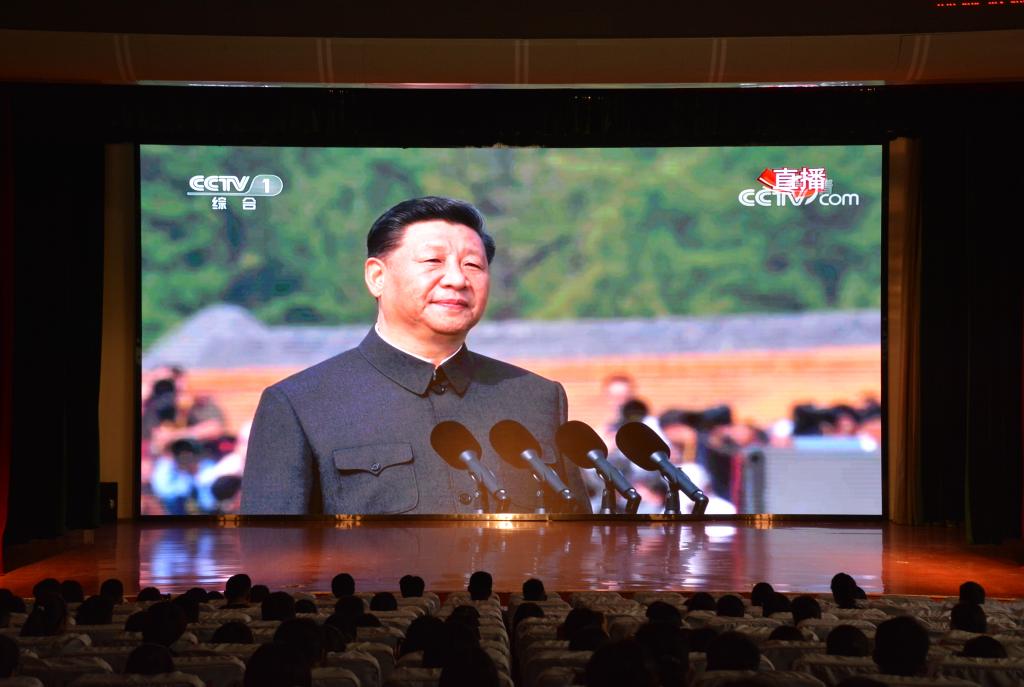 10月1日上午,庆祝中华人民共和国成立70周年大会、阅兵式和群众游行在北京天安门广场隆重举行。在这举国欢庆的时刻,我校党委书记于洲声及其他在菏校领导、教职工和假期留校学生共300多人在学术报告厅共同收看了大会和庆祝活动现场实况直播,同庆新中国70华诞,共享伟大祖国荣光!