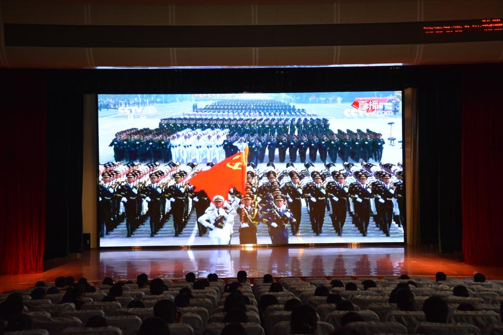 庆祝大会上,师生们认真聆听习近平总书记的重要讲话,观看威武雄壮的阅兵式、精彩纷呈的群众游行,每个人的脸上都洋溢着喜悦、自豪和感动。大家心潮澎湃,为祖国的强大感到无比自豪和骄傲,对祖国的美好明天充满了信心。