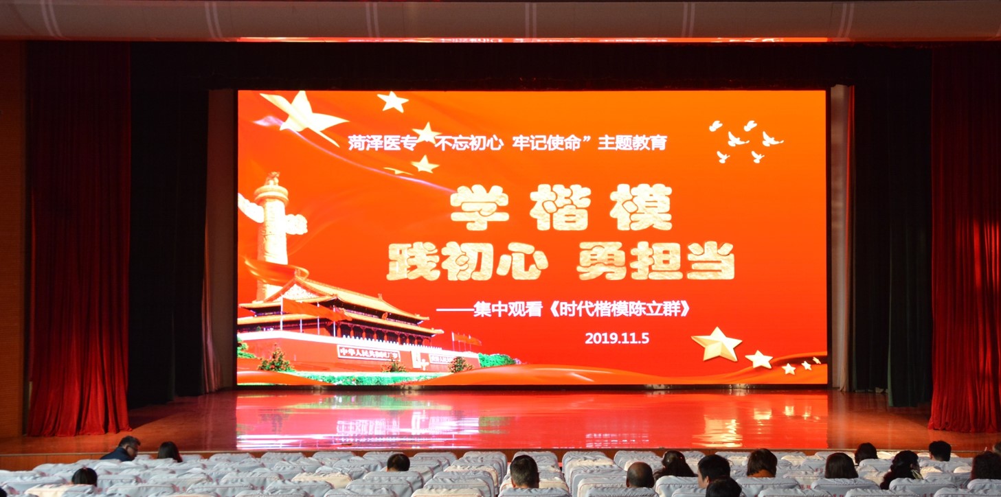 为深入推进“不忘初心、牢记使命”主题教育,树立新时代教育工作者的良好形象,切实增强广大党员干部干事创业、奋斗担当的责任感、使命感,11月5日下午,我校组织全体党员在学术报告厅观看影像纪录片《时代楷模陈立群》。