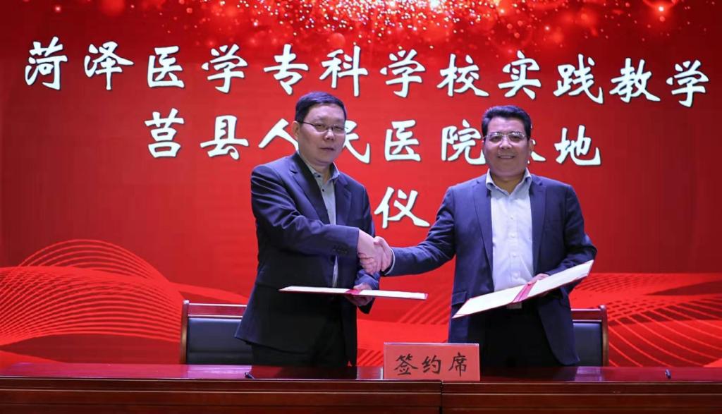 11月19日,我校实践教学莒县人民医院基地签约仪式在莒县人民医院举行。校长顾润国、副校长张传宝与莒县人民医院理事长马德鑫出席签约仪式。