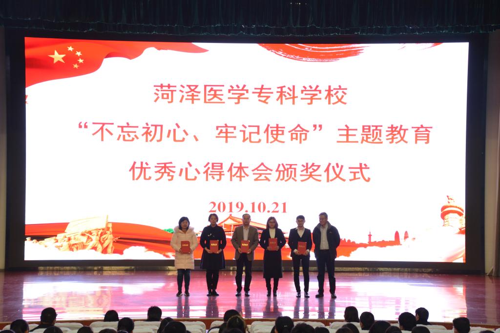 微党课比赛结束后,按照工作安排,现场还举行了“不忘初心、牢记使命”主题教育优秀心得体会颁奖仪式。