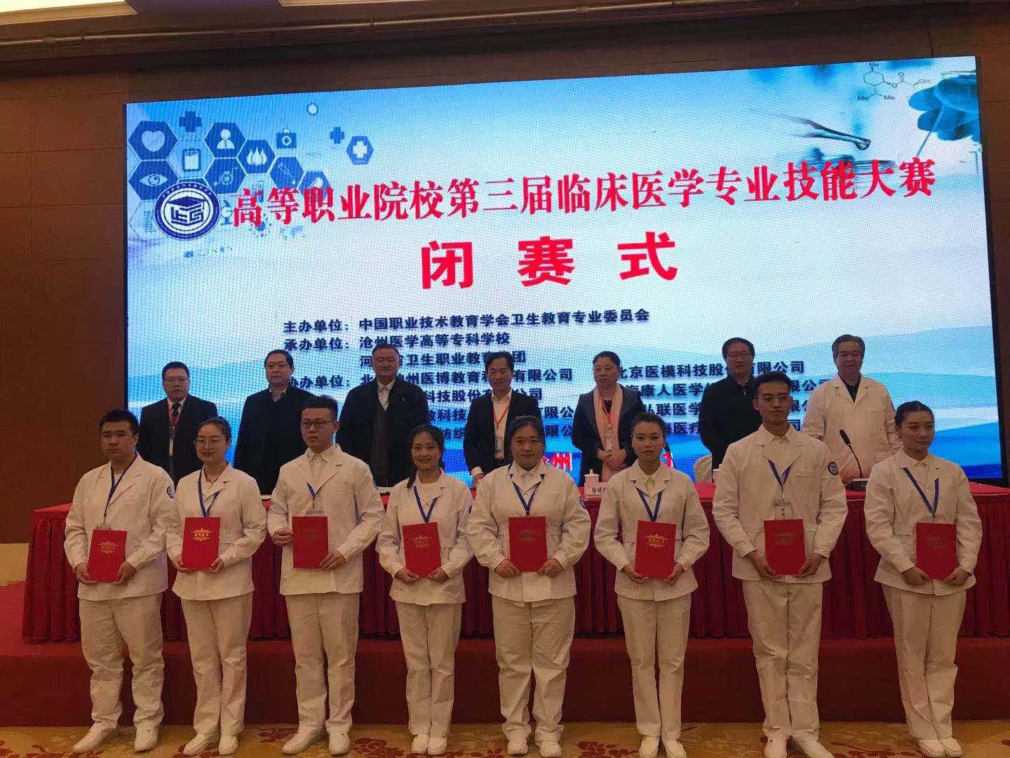 11月22日至24日,第三届全国职业院校临床医学专业实践技能大赛在河北沧州医学专科学校举行,来自全国22个省57所院校的170余名选手参赛。我校选拔三名同学参赛,分别荣获二等奖一名、三等奖一名。