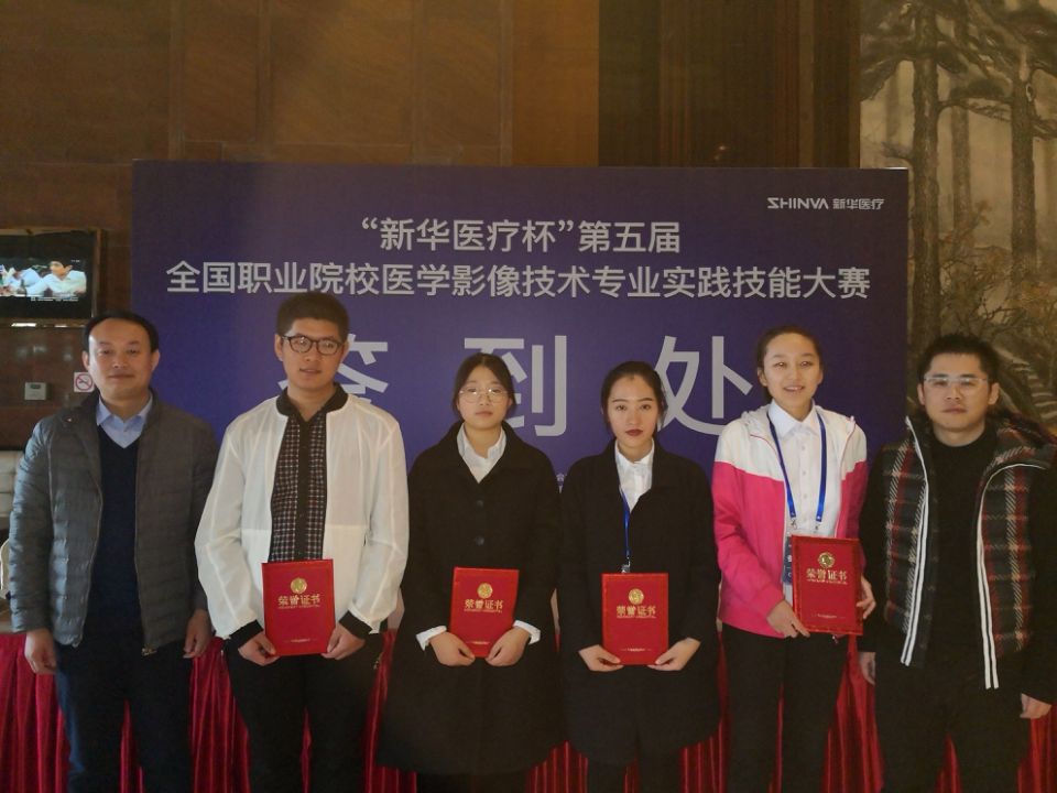 大赛持续两天,分理论竞赛和实践技能竞赛两个阶段。我校选拔2017级医学影像技术专业曲平安、王孟亚、桑慧雅、刘陈菲四名同学参赛。经过两天的紧张比拼,刘陈菲同学获得了CT扫描技术赛项个人一等奖,桑慧雅同学获得DR检查技术赛项个人三等奖,影像技术专业参赛团队获得团体三等奖,马龙华老师获得了“优秀指导老师”荣誉称号。