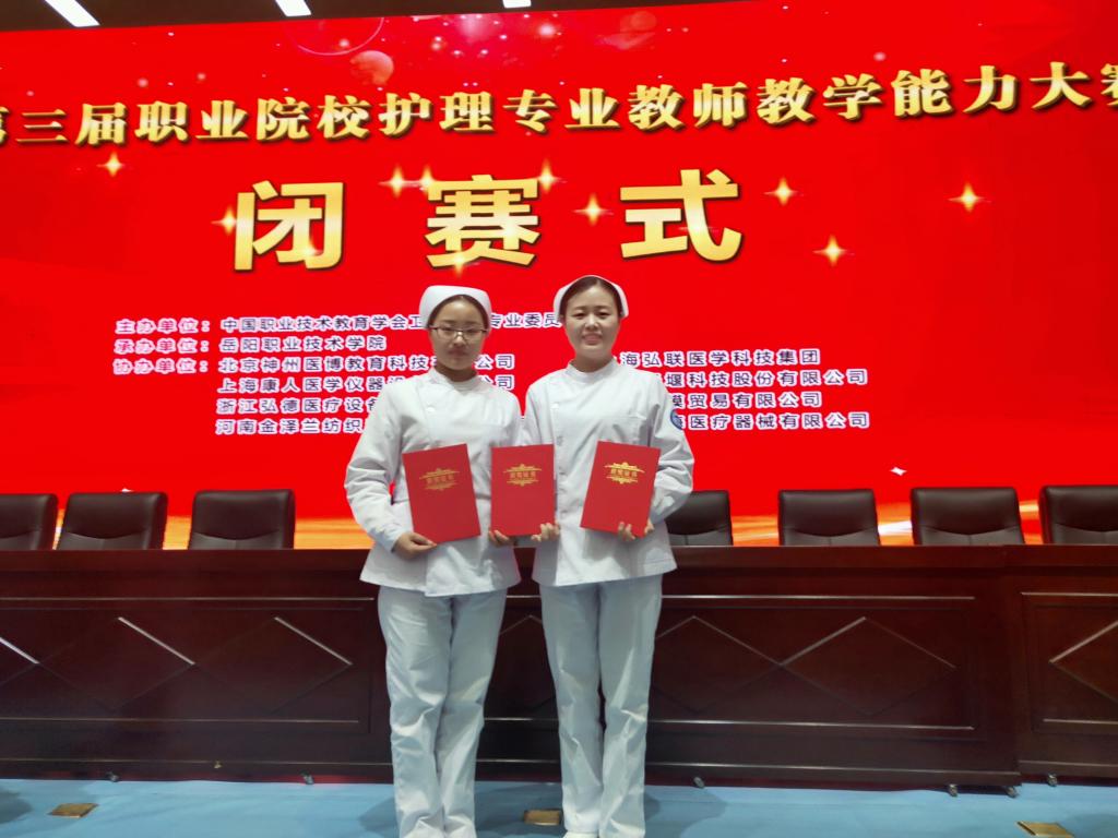 11月28日至12月1日,第三届职业院校护理专业教师教学能力大赛在湖南岳阳职业技术学院举行。我校教师孔静和刘隔参赛,均获得个人三等奖和团体三等奖。