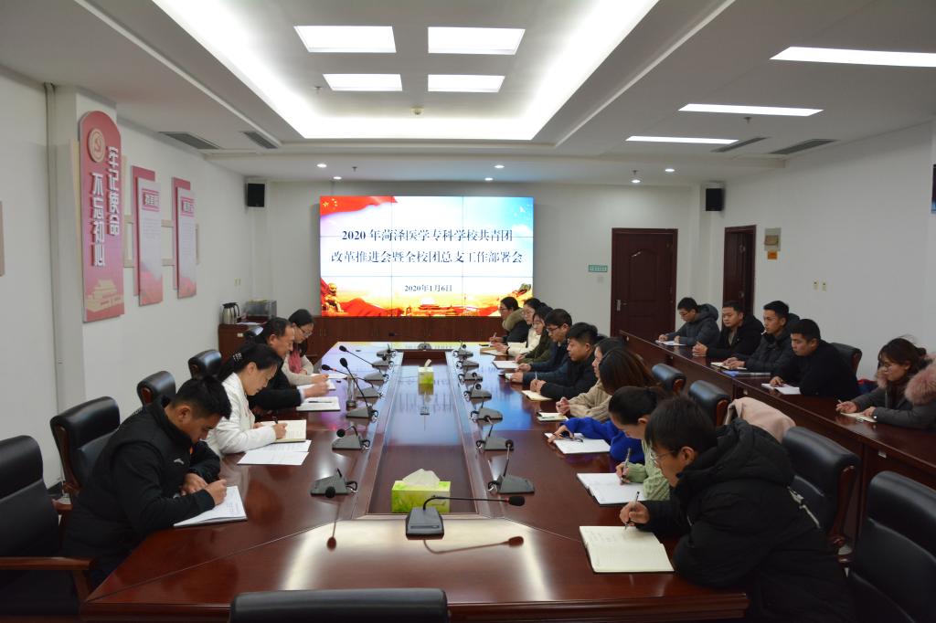 1月6日,我校团委在图书楼第一会议室召开2020年共青团改革工作推进暨全校团总支工作部署会议。校党委委员、副校长张传宝出席会议并讲话,校团委副书记于淼、团委全体成员、各系部团总支书记及委员参加了会议。