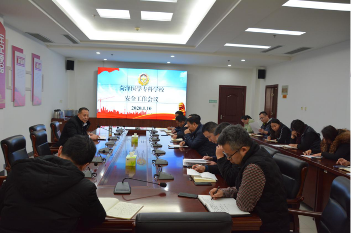 1月10日下午,我校在图书楼第一会议室召开安全工作会议,会议由副校长张传宝主持,各二级部门负责人参加会议。