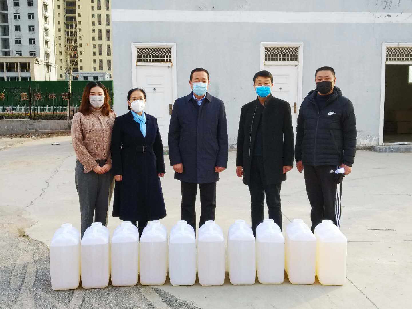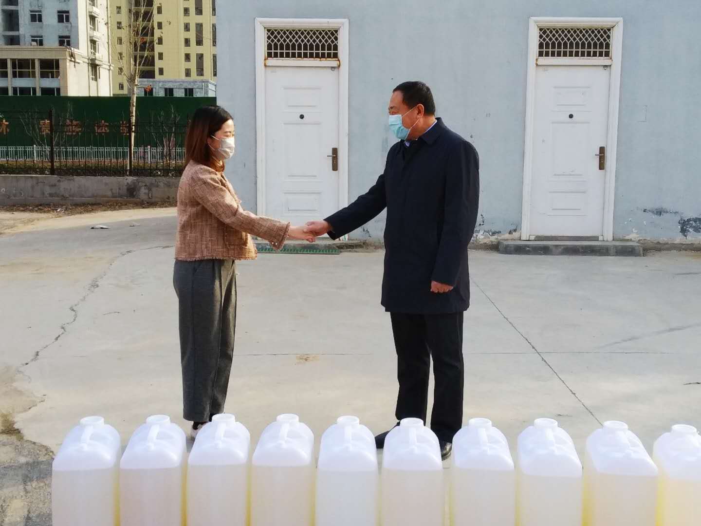 3月3日下午,我校药学与检验系李楠老师向学校捐献一批84消毒液,为学校疫情防控工作提供帮助。副校长张传宝代表学校接受捐赠,药学与检验系、总务处、宣传部等部门参加了捐赠活动。