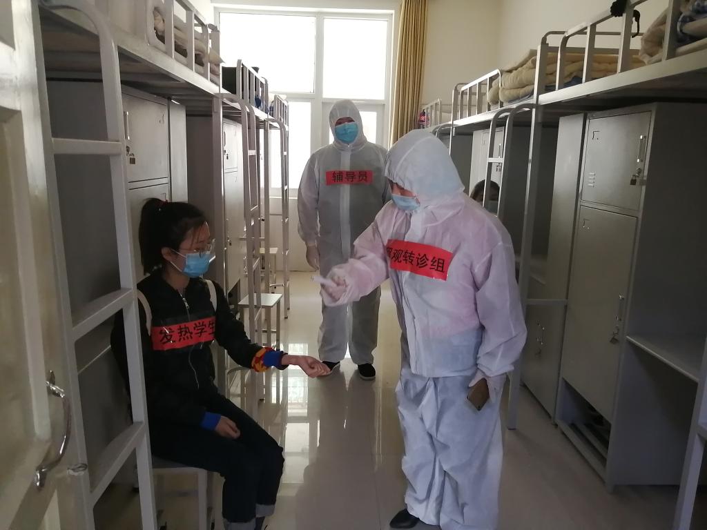 演练模拟了学生进入学生公寓时和在宿舍内突发体温异常两个场景,全流程、全真实演练了突发情况的处置程序和应对方法。在学生返校入住公寓演练中,全体工作人员佩戴口罩,组织学生间隔一米有余,有序进行报到流程,通过体温监测、身份核对,统一组织分流进入宿舍,医护、消杀等职能人员随时待命。演练模拟学生在宿舍突发体温异常情况后,按预定程序立即启动学生公寓疫情防控应急程序,实战演练了学生公寓、系部、校疫情防控领导小组办公室以及定点医院之间的应急反应、整体联动过程,以及对发热学生及相关学生的隔离引导、宿舍区域的消杀处置等。