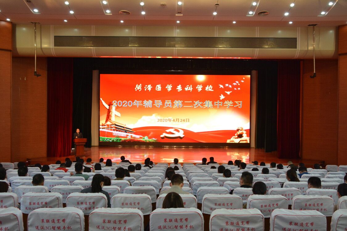 4月24日下午,我校在学术报告厅开展2020年辅导员第二次集中学习活动,副校长张传宝,各系党总支书记、副书记、全体专兼职辅导员90余人参加学习。学生工作处郭树榜带领大家学习《习近平关于社会主义文化建设论述摘编》中关于“坚定文化自信,建设社会主义文化强国”的重要论述。