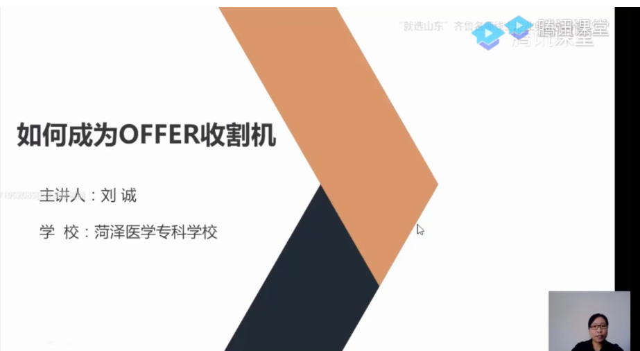 5月26日上午,由山东省人力资源社会保障厅主办的“就选山东”2020届高校毕业生线上求职招聘系列活动—齐鲁名师线上就业创业指导课求职类第三十期开讲。本次课程由我校校企合作与就业处刘诚老师主讲,通过腾讯课堂App进行直播授课,面向全省应届毕业生讲解如何成为offer收割机。