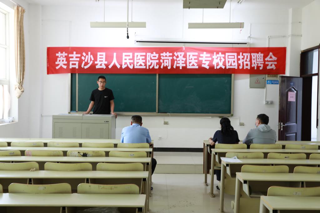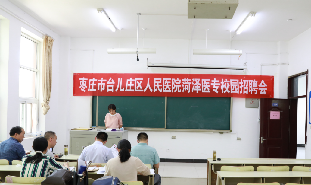 5月27至28日,枣庄市台儿庄区人民医院、微山县中医院、新疆英吉沙县人民医院三所医院来我校现场招聘。来自护理系、临床医学系、口腔医学系、医学技术系相关专业的240余名毕业生参加应聘。我校副校长张传宝参加招聘会现场,校企合作与就业处全体人员、相关系部负责老师通力合作、积极做好各项接待、服务工作,配合医院顺利完成了本次专场招聘会的笔试、面试等工作。