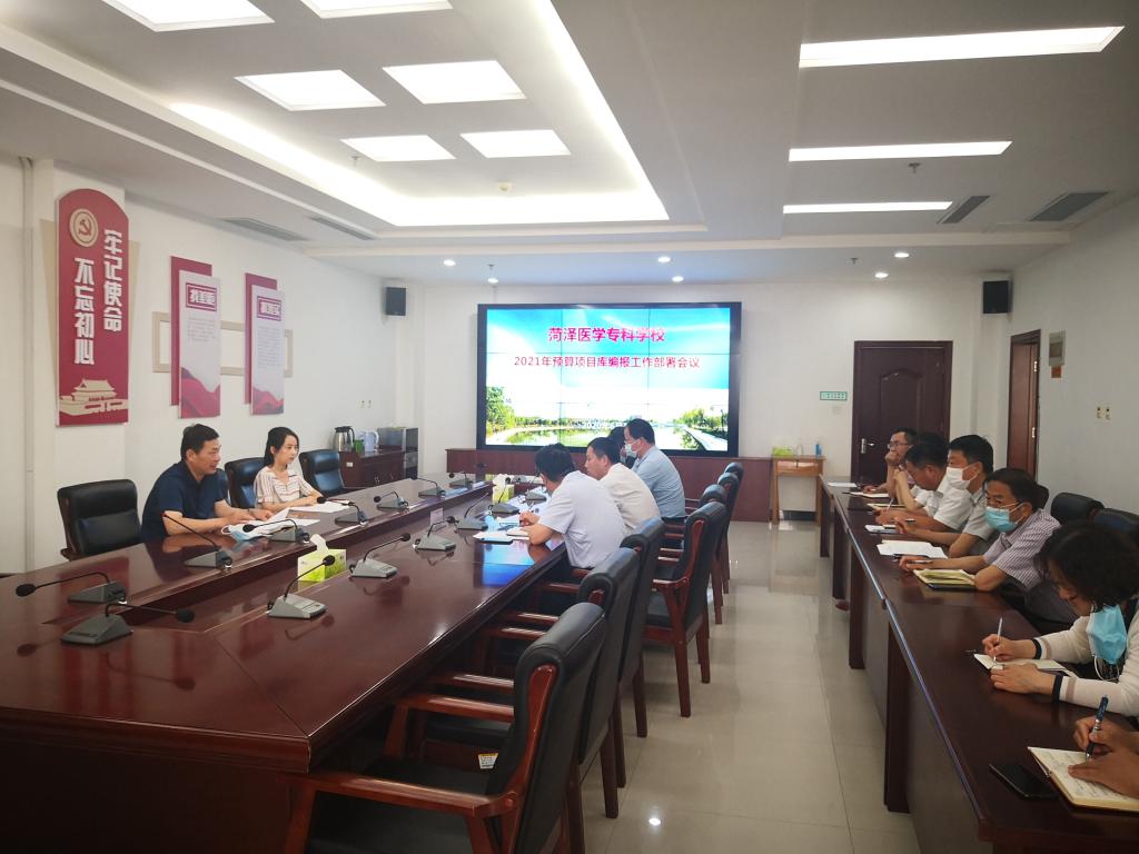 蒋继国首先传达了山东省卫生健康委员会相关文件和《菏泽医学专科学校关于2021年预算项目库编报工作的通知》,并对2021年校内预算项目库编报工作做了详细部署。