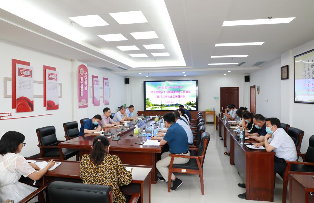 6月4日下午,我校在图书楼六楼第一会议室召开毕业生就业工作指导委员会工作会议暨2020年就业工作座谈会。党委书记于洲声,校长顾润国,副校长张传宝、副校长蒋继国,各二级部门负责人、各系部主任和党总支书记、校企合作与就业处全体人员参会。会议由张传宝主持。