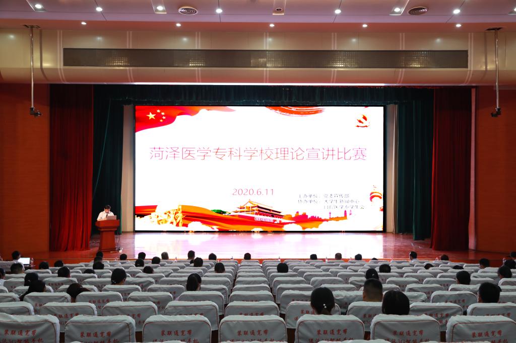 为切实提高学校理论宣讲水平,强化思想政治建设,6月11日下午,我校在学术报告厅举办2020年理论宣讲比赛。校党委副书记周长文,校党委委员、副校长张传宝,以及办公室、组织部、宣传部、纪委、各党总支负责人等16人担任评委,学校党务部门、各总支、支部支委全体成员、思政部全体教师及全体专兼职辅导员到现场观摩比赛。