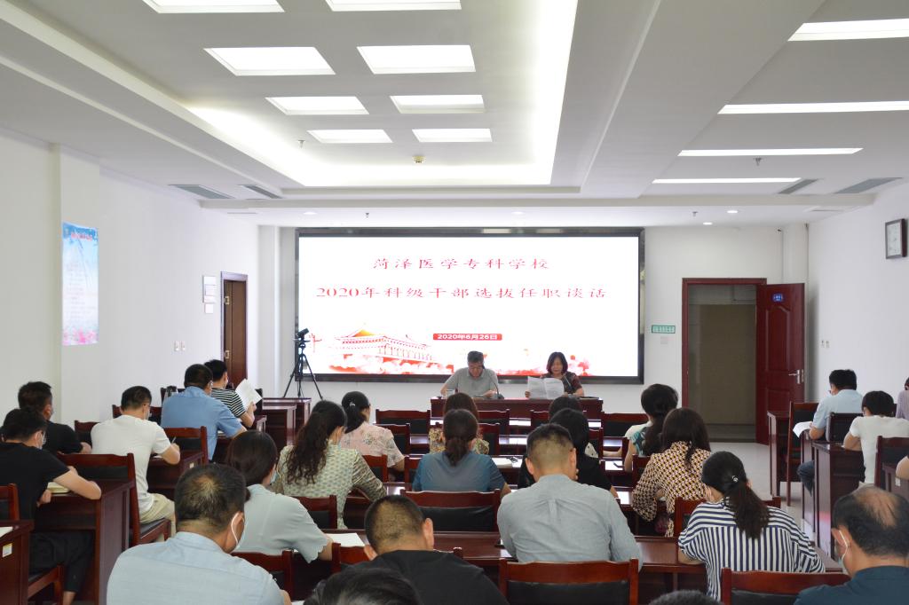 根据《党政干部选拔任用工作条例》,结合我校2020年科级干部选拔任用工作安排,6月26日上午,我校党委书记于洲声同志于对近期新选任的43名科级干部进行了任职集体谈话。我校党委委员、纪委书记吴晓露同志主持本次集体谈话。