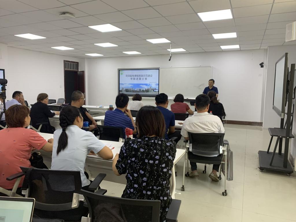 为加强我校课程思政示范建设的过程管理,确保示范专业及课程建设质量,7月7日,我校在1号实验楼5楼智慧教室举行“课程思政示范建设”中期进展汇报会,汇报会分上午下午两场。副校长蒋继国、各系部负责人、教务处相关人员担任此次中期汇报评审专家,各专业负责人、20个示范课程负责人及2个示范专业的负责人参加了本次汇报会。