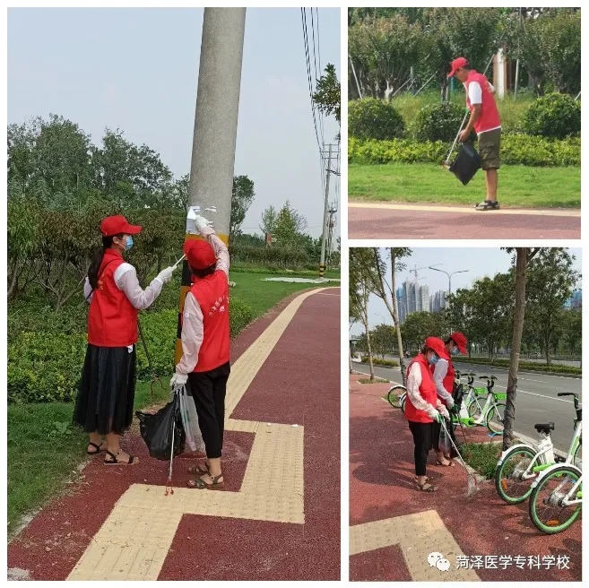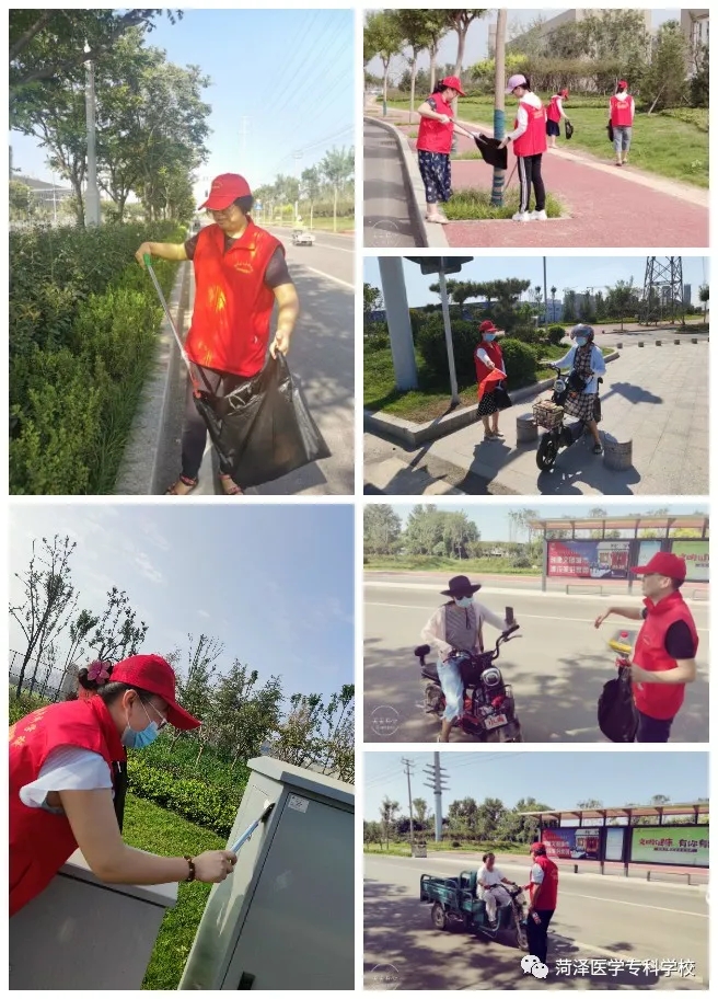 按照菏泽市创建全国文明城市要求,近日以来,菏泽医专教师志愿者在泰山路(句阳路至太原路段)积极开展文明志愿服务活动。冒着炎炎烈日,志愿者们在责任路段认真执勤,及时清理各类垃圾,参与交通疏导,铲除乱贴乱画小广告,劝阻非机动车逆行、不规范停车,翻越护栏等不文明行为,为美丽的菏泽增添了一道靓丽的风景线。学校志愿者们的行动,受到菏泽市文明创建管理部门的充分肯定和广大市民群众的一致赞扬。