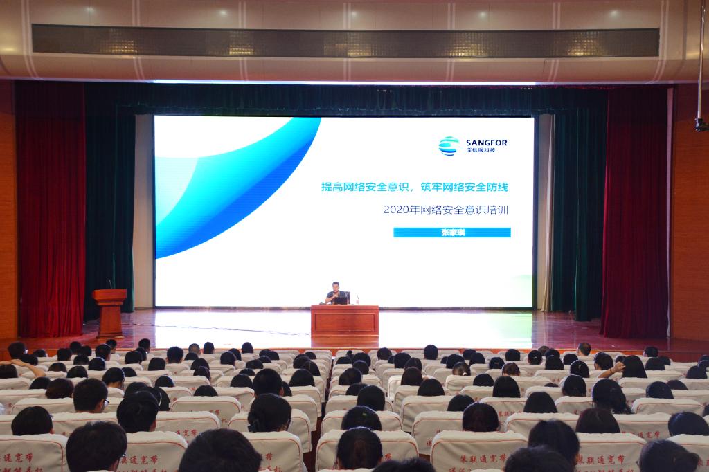为宣传普及网络安全知识,防范网络安全风险,按照第七届网络安全宣传周活动方案,9月16日下午,我校邀请深信服科技股份有限公司安全事业部解决方案专家张家琪工程师在学术报告厅为师生作“提高网络安全意识,筑牢网络安全防线”主题讲座。副校长蒋继国主持讲座。