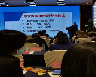 本次会议就老年保健与管理专业教学标准制定、办学经验、人才培养等进行了深入交流。全国卫生行指委秘书长杨文秀教授等人分别讲话,表达了对本套首轮规划教材编写工作的支持、希望和要求。赵文星作为代表在大会作“爱驻夕阳、健康医养”的会议报告,系统介绍了我校老年保健与管理专业在教学模式、课程体系以及人才培养等方面的探索和创新,对取得的成果进行了会议汇报,报告引起与会代表的强烈关注,多家院校代表表示会尽快到我校学习考察老年保健与管理专业建设经验。