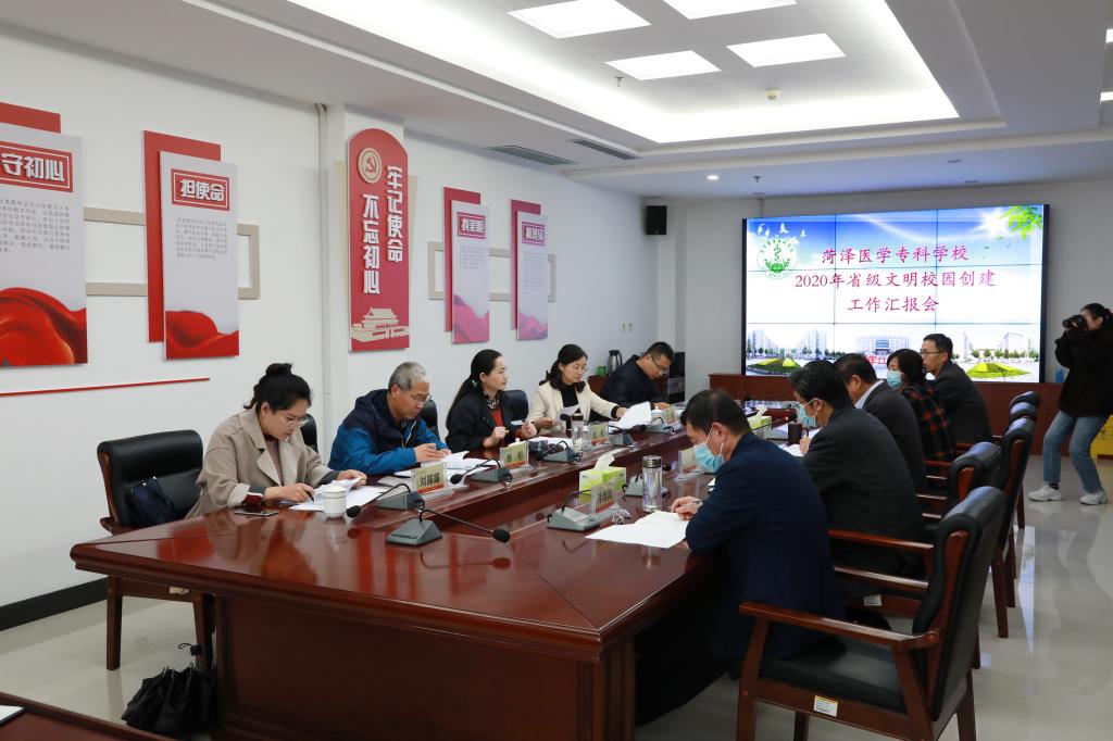 11月17日,菏泽市文明委检查组刘红一行5人到我校对省级文明校园创建工作进行实地复查。此次考评分为听取汇报、查阅相关材料和实地考察三个步骤。学校领导周长文、刘心臣、吴晓露、蒋继国以及各部门负责人参加了汇报会。