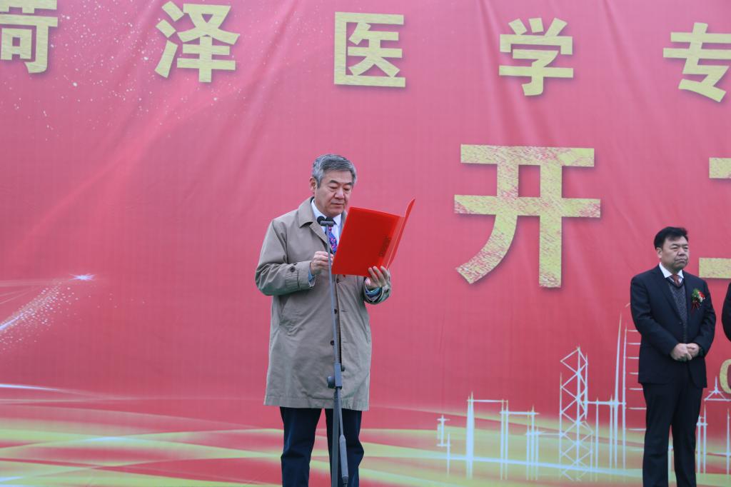 吴向东代表省卫生健康委向学校及全体师生表示热烈祝贺。他指出,菏泽医专新校区建设是全省医学教育事业发展的一件盛事,省卫生健康委将一如既往地支持菏泽医专建设发展,在学校发展规划、师资队伍、专业学科和附属医院建设等方面给予指导和支持。他希望学校抢抓机遇,以新校区建设为契机,坚持立德树人根本任务,围绕改建本科院校目标,不断提高管理水平、教学质量、办学特色和社会声誉,为全省卫生健康事业发展和地方经济社会发展作出更大贡献。