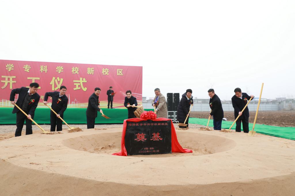 12月2日上午,我校举行新校区项目建设开工启动仪式。省卫生健康委党组成员、副主任吴向东,菏泽市委常委、副市长王磊,我校党委班子全体成员,菏泽市教育局、自然资源规划局、科技局、财政局、审批局、环保局、公安局、牡丹区委、牡丹办事处、新校区所在地块相关社区等有关部门负责人,菏泽市城市开发投资有限公司、中建二局土木工程集团有限公司、中交第三公路工程局有限公司等企业负责人以及我校教师代表共300余人出席、参加仪式。我校党委副书记周长文主持仪式。