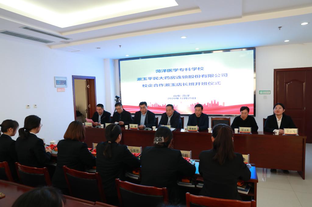 12月25日下午,我校于第三会议室举办校企合作漱玉店长班开班暨认师仪式。漱玉平民大药房连锁股份有限公司人资中心总监李维,漱玉平民商学院培训专员李道治,我校副校长张传宝、蒋继国出席,药学与检验系党总支书记田文革、系主任刘观昌和部分专业课教师、校企合作与培训就业处全体、漱玉平民6名带教老师及漱玉店长班30名同学参加了仪式。本次仪式由校企合作与培训就业处处长王学贺主持。