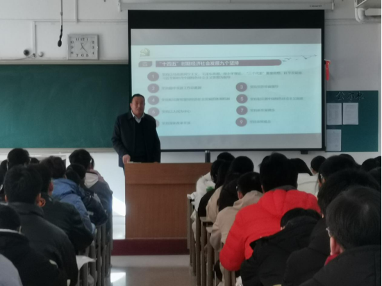 张传宝在授课中系统回顾了“十三五”时期我国经济、政治、文化、社会、生态、脱贫攻坚、人民生活、对外开放、国防和军队建设、国家安全等十个方面取得的伟大成就;展望了到二〇三五年我国基本实现社会主义现代化的远景目标;带领大家学习了十四五规划与2035年远景目标需要把握的几个关键词和十四五时期经济社会发展的“九个坚持”;在授课最后给予学生殷切期望,希望同学们立足专业,潜心学习,完善自我、担当作为,将坚定的理想信念转化为服务国家建设发展、促进自己成长成才的鸿鹄之志与实际行动,争做担当民族复兴大任的时代新人。