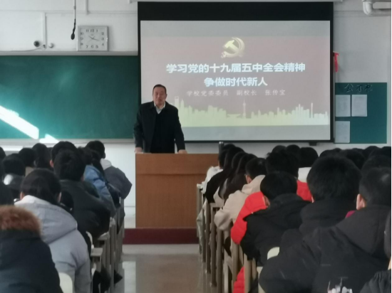 新年伊始,万象更新。1月1日上午,校党委委员、副校长张传宝到联系班级2020级预防1.2班以《学习党的十九届五中全会精神 争做时代新人》为题宣讲党的十九届五中全会精神。