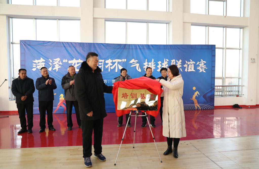 菏泽市排球协会主席苗启元,菏泽医专副校长张传宝,菏泽学院体育与健康学院院长刘新民,菏泽医专基础医学部主任韦岩,曹县磐石建筑集团总经理王立国和山东盛凯消防安全工程有限公司总经理冯展雷等领导同志共同出席开幕式。张传宝和苗启元分别发表致辞。韦岩与苗启元共同为菏泽医专菏泽市气排球健身培训基地揭牌。