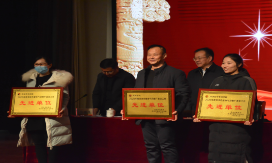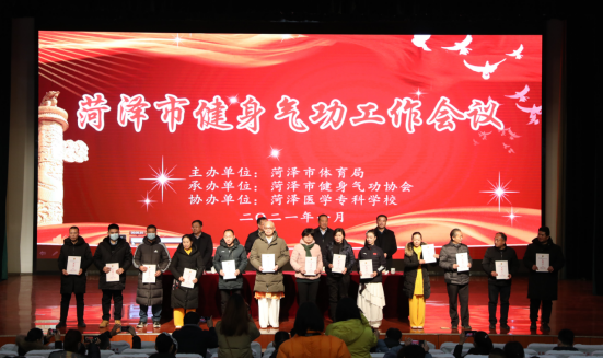 与会领导为荣获2020年度菏泽市健身气功工作先进集体、菏泽市健身气功推广普及工作先进集体、菏泽市健身气功推广普及工作先进单位、菏泽市健身气功工作特别贡献奖获得者、菏泽市健身气功工作的先进个人颁奖。我校在此次会议中被授予“2020年度菏泽市健身气功推广普及工作先进单位”,油桂英老师和王蕴衡老师被授予“菏泽市健身气功工作的先进个人”!